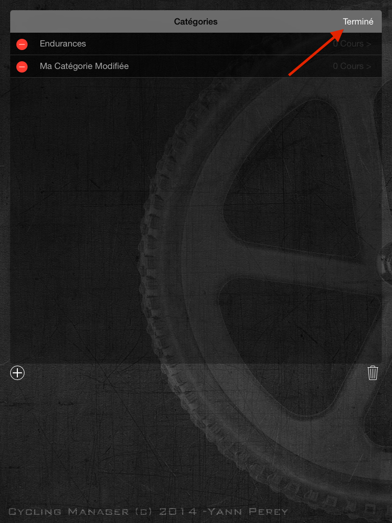 La catégorie est ensuite supprimée de la table avec tous les cours qu’elles contient. Il ne vous reste plus qu’à pressez le bouton « Terminé » en haut à gauche de la table (Figure 12.).