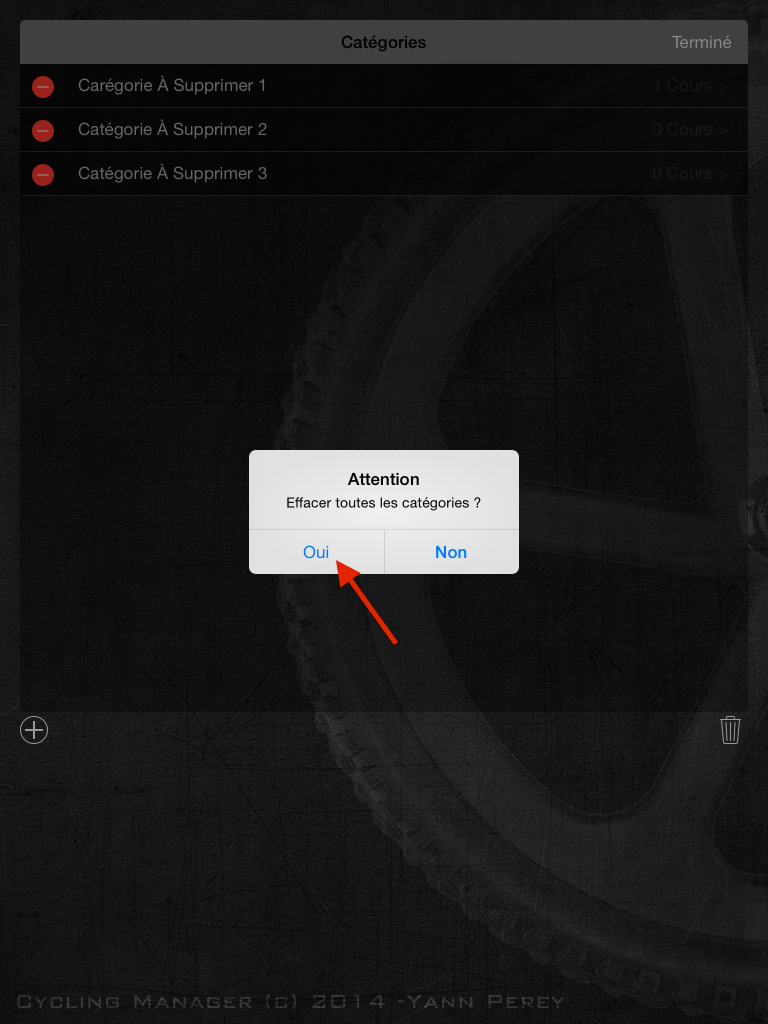 Un nouvelle fenêtre va alors s’ouvrir vous demandant la confirmation de la suppression de toutes les catégories. Pressez sur le bouton « Oui » si vous en êtes sûr.