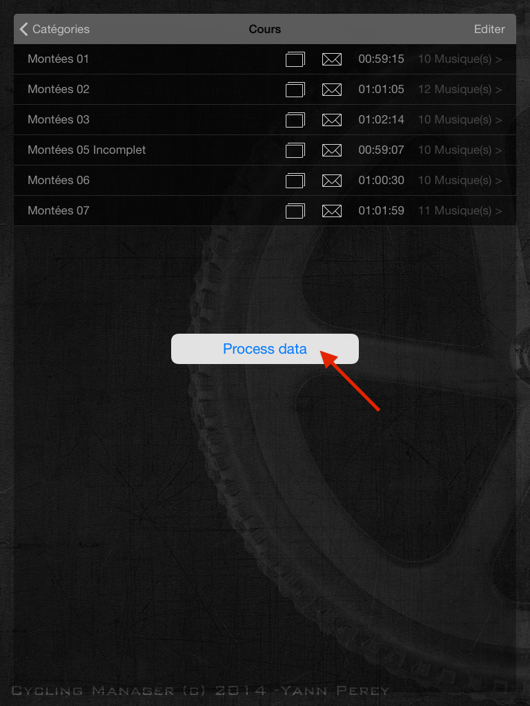L’iPad bascule alors dans l’application CyclingManager et vous propose un bouton pour traiter les données reçues (Figure 4.).