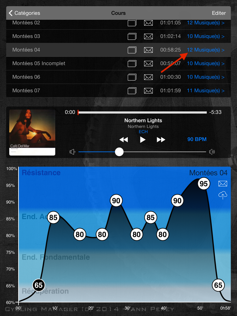 Pour vérifier la bonne importation du cours, affichez la vue détaillée en pressant sur le nombre de musique qu’il contient (Figure 6.).